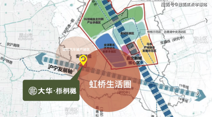 项目距离11号线上海汽车城站约2.4km,不算真正意义上的轨交房。轨交14号线横亘安亭境内的规划建议,也已提上日程。