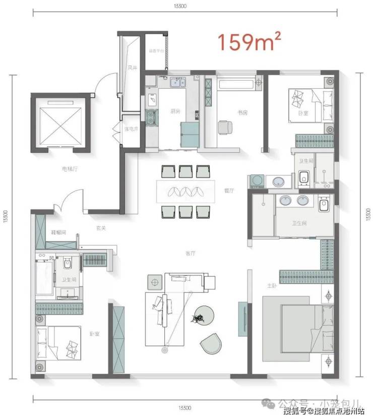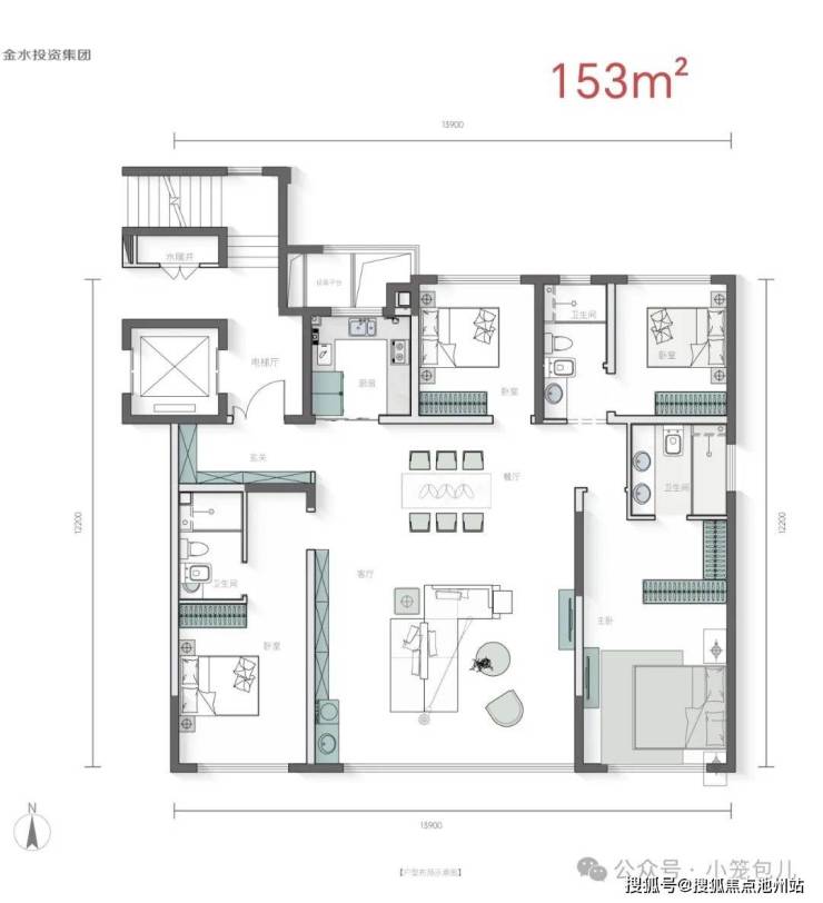 主力户型:126㎡,159m²,179m²; 153㎡的洋房