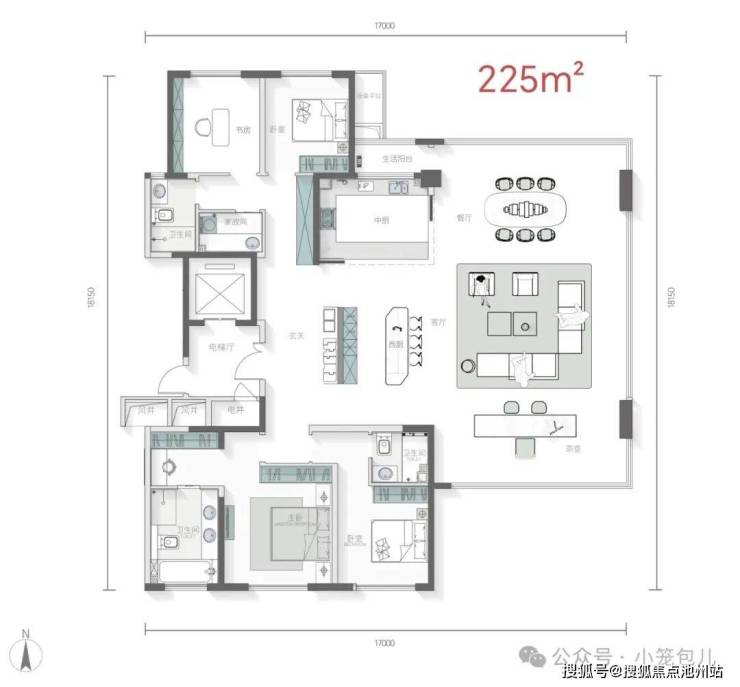 7号楼225m²大平层,16层,层高3.1米。