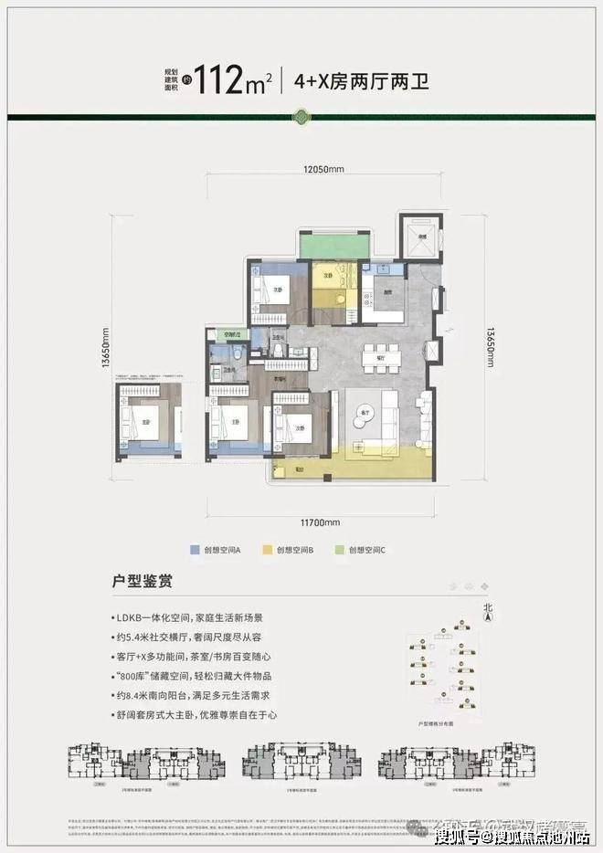 【112㎡四房+X空间】(小高层边户)