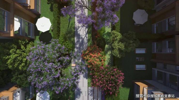 “春荆、夏薇、秋楹、冬榴”四季主题归家步道,串联起宅间邻里花园约百种珍稀植被演绎流动的四季艺术馆。