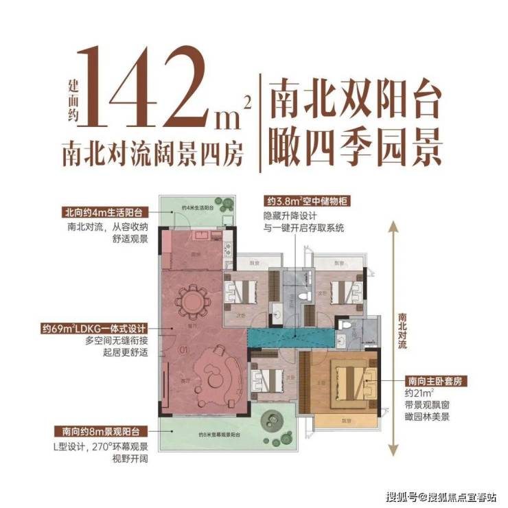 131-142㎡纯改善四房,使用率超100%。户户南北对流,标准层高3.15米(首层层高3.3米)。户户双阳台,打造奢阔大平层。