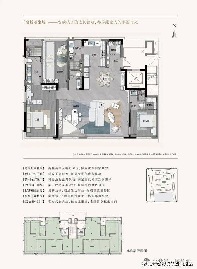 约49㎡宽厅,完美适配派对聚会,满足三代同堂欢聚需求;