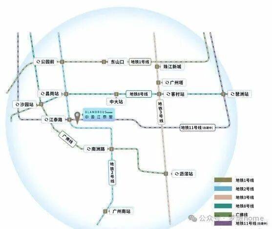 项目周边2公里范围内覆盖2号线、广佛线燕岗站、8号线昌岗站,经地铁出行可实现7站至南站、7站至琶洲,经换乘3号线、1号线、8号线,3站至中大、7站珠江新城、8站东山口