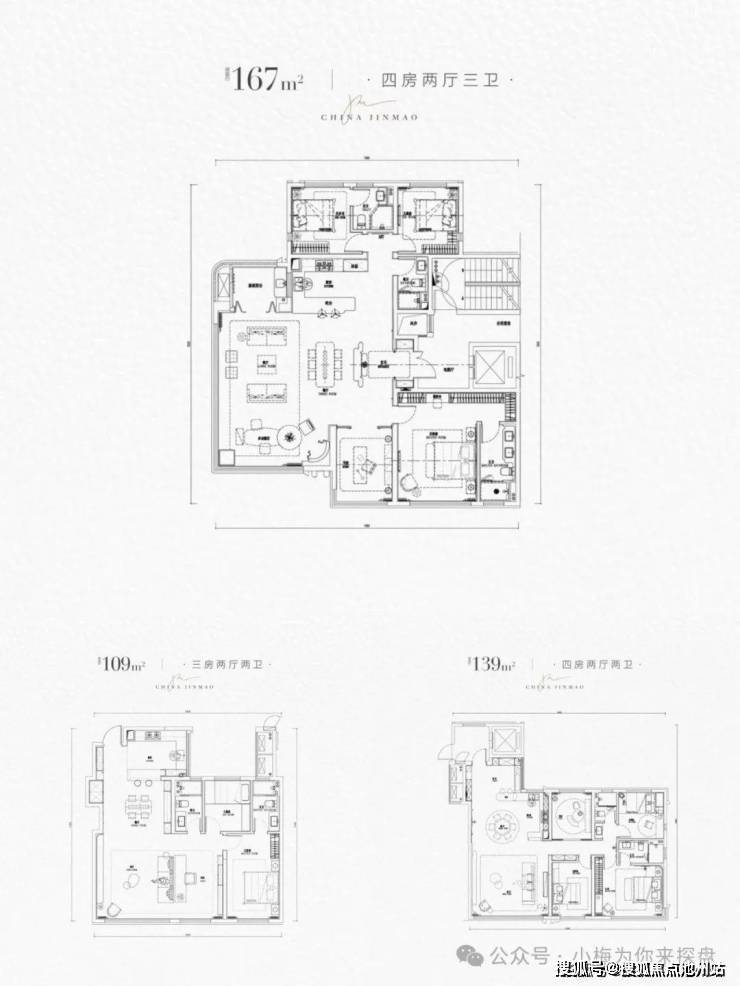 金茂·樾满晴川目前还在前期筹备中,户型面积是109,140,166三个面积段,为第四代住宅百分之百➕的得房率,层高3~3.1米。户型图如下