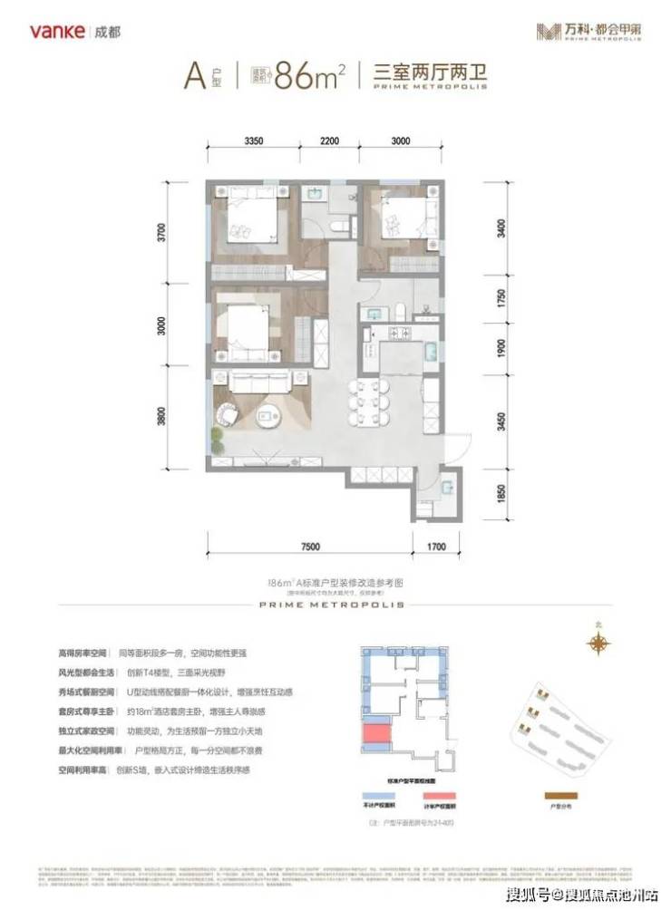 万科·都会甲第 平层户型·建面/86㎡