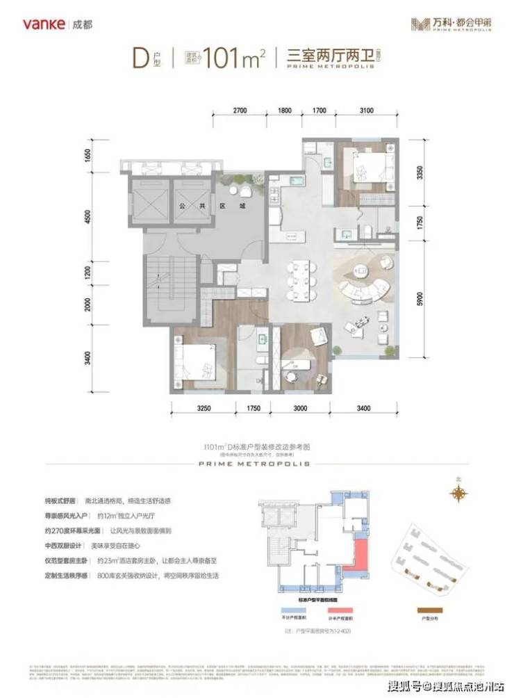 万科·都会甲第 平层户型·建面/101㎡