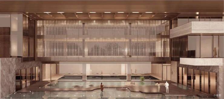 外立面方面,项目汲取广富林文化精髓再造东方屋宇,采用渐暖色石材、银灰色及香槟色铝板和涂料的组合,带来厚重与轻盈的平衡,在彰显文化豪宅的同时又包含国际风骨,整体呈现诗意东方之美。