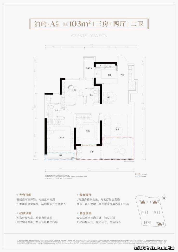 得房率的提升,户型自然就有了巨大的发挥空间。比如103㎡的三房,三开间朝南,巧妙地用S墙和创新的玻璃厨房,让空间的观感大大提升。