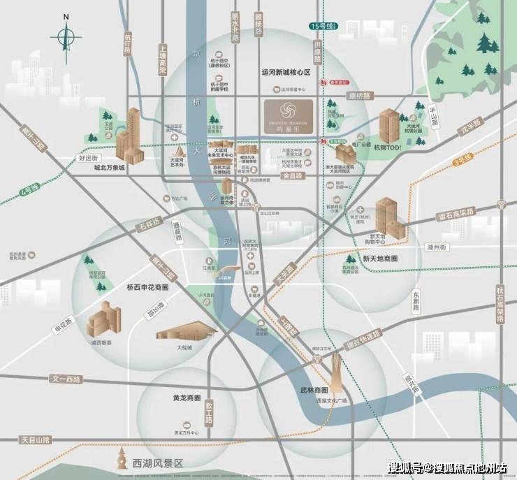 鸣澜里还有目前距离大运河最近的项目之一:与千年古运河直线距离仅约300米。在杭州主城区的运河带上,从江河汇到运河新城基本都是豪宅,无论是售价高达10万元/㎡左右的IFC大平层,还是安琪儿板块已经迈上5000万高阶的叠墅,以及运河新城以及超过2000万的叠墅,运河豪宅带上,鸣澜里是总价最友好的项目了。