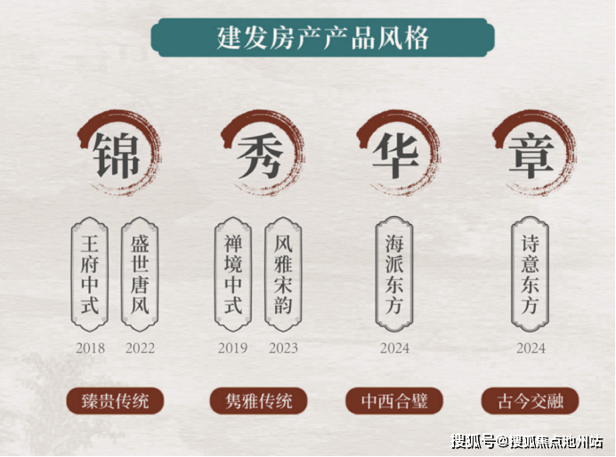为了重塑“好房子”体系,建发房产将原有的六款新中式产品凝练为「锦·秀·华·章」四大产品系列: