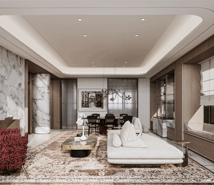 尤其是主卧的套房,不仅有豪华卫浴,大尺度衣帽间,甚至书房、工作室空间就在边上,业主几乎可以做到不出卧室就能享受闲情逸趣。