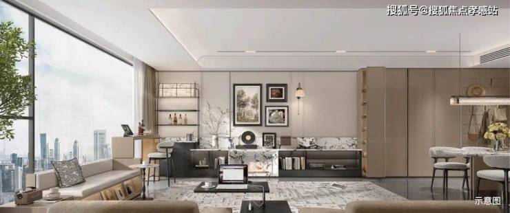 项目的中平四开间朝南,超大IMAX的采光面,妥妥市区豪宅大平层的尺度感。