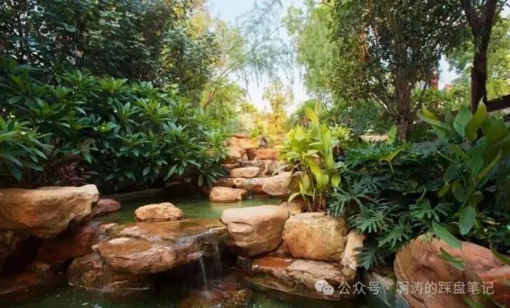 园区匠造山水园林:黄蜡石叠瀑溪流、全冠移植香樟、300年古茶花树,四季皆景。