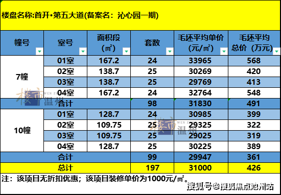 首开·第五大道一期毛坯均价约3.1万元/㎡,装标为1000元/㎡。