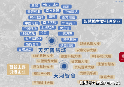 天河智慧城核心区,这里汇聚有网易总部、酷狗、南方测绘、小鹏汽车、极飞科技等企业大咖,此外德生科技、北明软件、极飞科技等新兴的高科技企业也纷纷进驻于此。
