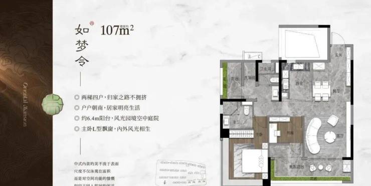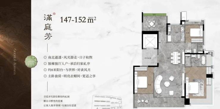 将加推的建面约112㎡户型,层高仅8层,一梯两户,南北对流,面积更小,但舒适度和私密性不输。