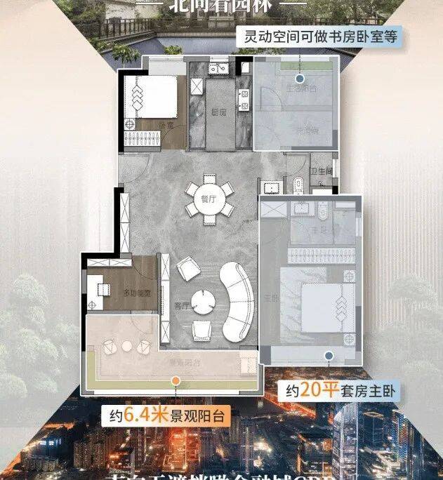 北侧就是5万m²龙熹山山顶公园,背靠约8万㎡专业级汇景高尔夫球场,还有自身配建的6.8万m²园林,满满的负离子;