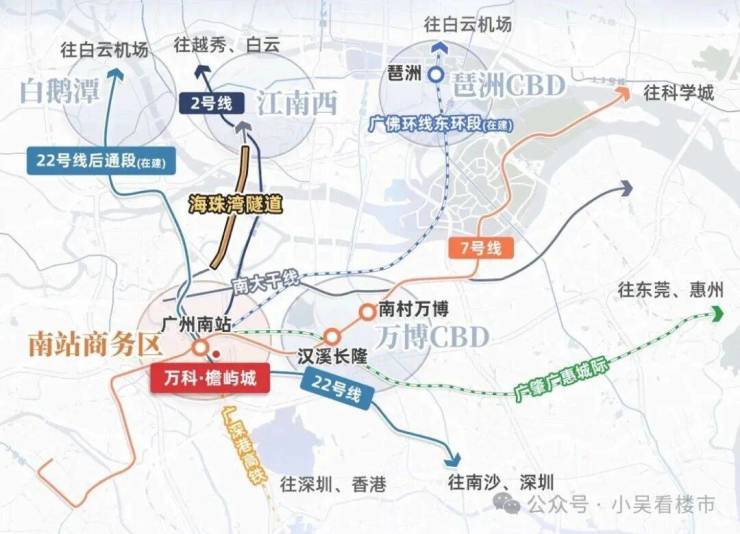项目位于广州南站板块,距离南站仅1.5公里,项目西北面几百米就是南站商务区,这块地是去年12月万科以底价28.8亿拿下的,总共有三宗宅地,总面积23万平,折合楼面价1.1-1.3万/平,这块地最早就是由万科持有的,当时地块性质是商业用地,后面由万科进行退地获得货币返还,ZF收储调规并重新上架,相当于左手倒右手。