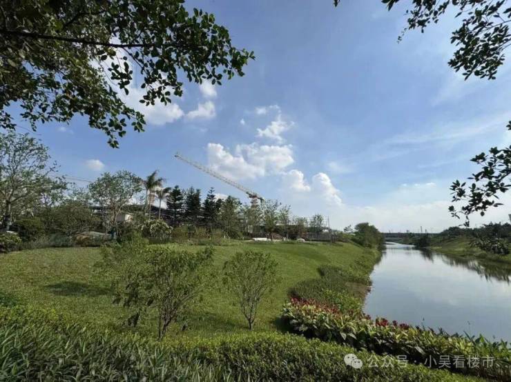 项目还在地块西北侧打造了约2万方的滨河公园,重新修葺河岸,增加人行栈道,未来还会和附近的禾田水韵公园示范区进行联动,衍生出片区内独树一帜的滨水街区。