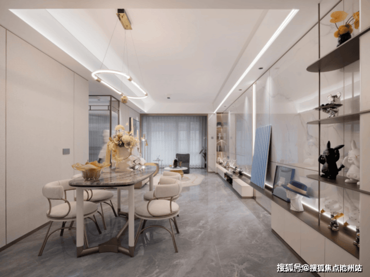 不仅将采光面拉到极致,还解决了短开间、长进深的传统户型客厅采光不佳的核心痛点