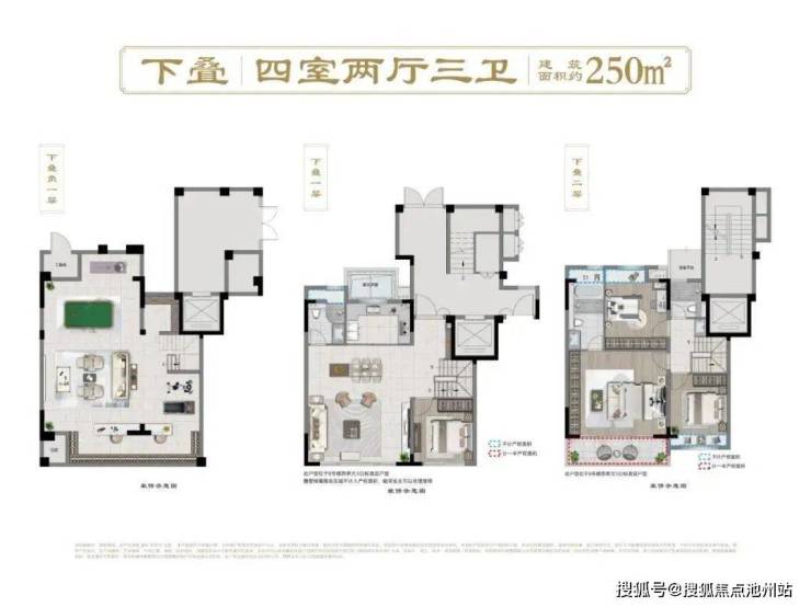 基于约1.3容积率的低密土地,打造禅境中式墅区产品,涵盖精装洋房(106-129㎡)和毛坯叠墅(上叠约145㎡、中叠约150㎡、下叠约250㎡),规划总户数422户