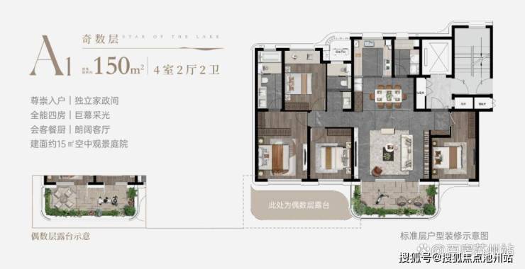 户型也正式出炉,建面约150/175/215/240㎡四大主力户型。奇偶分层,自带空中庭院。