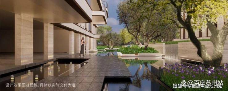 约700米漫步环串联九园,转角遇幽芳,移步换景致。与架空层自然延伸,营造太湖畔层峯人士的低密隐逸之境。