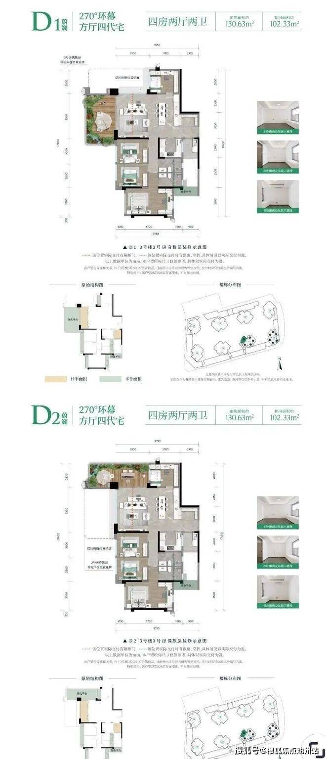 3. D1和D2户型(四房两厅两卫)
