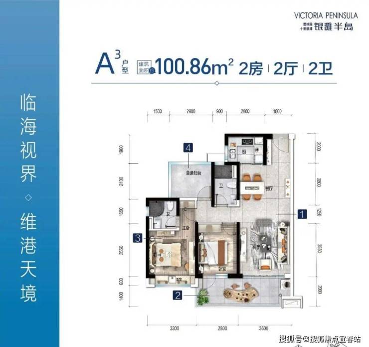 为商业精英青年打造:建面约100㎡瞰海户型