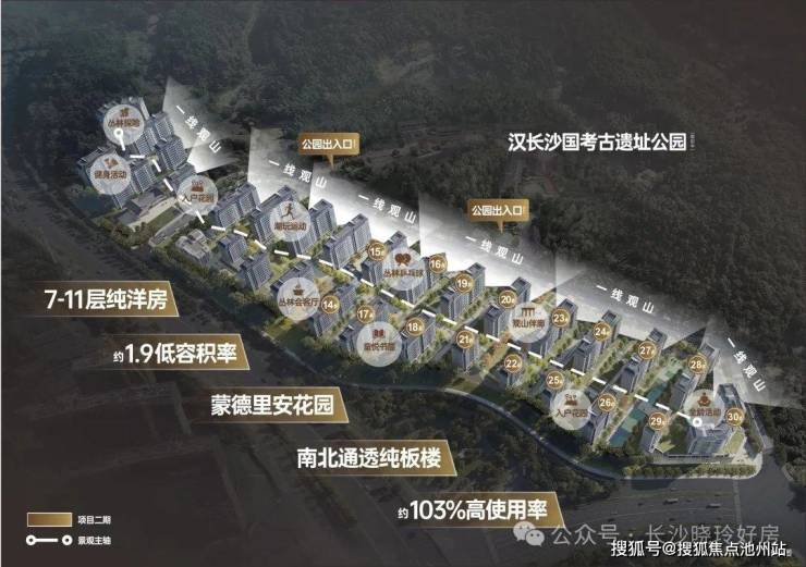 ◎ 公园洋房:拥约217公顷汉代历史文脉--汉长沙国考古遗址公园,揽约6400亩谷山森林秘境,生态环境得天独厚,将公园美景与社区生活无缝融合,塑造“长在公园上的洋房”。