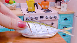 迷你小厨房烹饪迷你海鲜烤鱼搭配酱汁