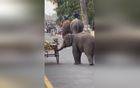 小象路过小摊顺走一水果,网友:像极了小时候嘴馋的我
