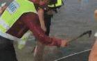 游客河边游玩被拦 工作人员持镰刀连续扎破多艘皮划艇