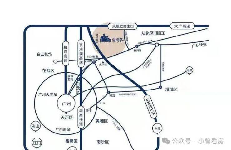 高速:广从快速路双向六车道无红绿灯,自驾40分钟达珠江新城;从埔快线(北部快线),两期建设,一期预计2022年开通,从化——长平(黄埔)——科韵路(天河),半小时通勤直达市区;大广、京港澳、北二环等高速全面连接,无缝衔接粤港澳大湾区,出行无忧。
