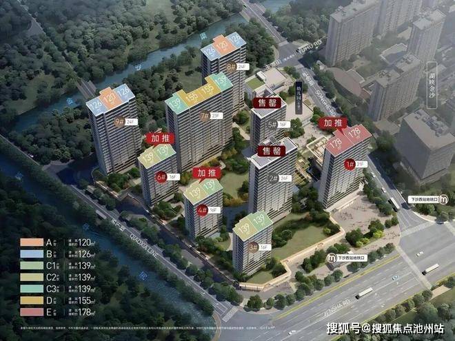 月映金沙庭由9幢16-24F高层住宅组成,东北角为配建9班幼儿园,规划户型面积约120-178㎡,容积率2.3,共计432户,预计交付时间为2027年10月。
