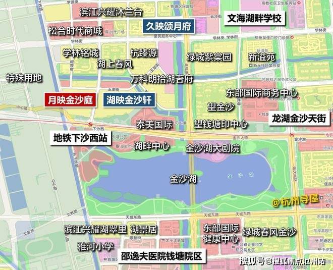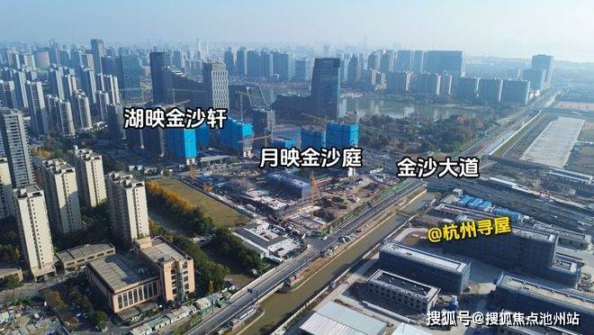 项目位于地铁1号线下沙西站口,东侧紧邻姊妹项目绿城湖映金沙轩,不远处便是龙湖金沙天街,地段还不错。