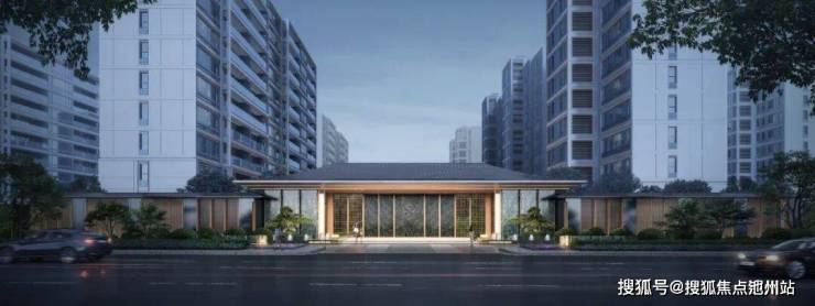 一进月映绮门,在建筑形式上注重空间排场以及形制美感,约70米的恢弘尺度、中轴对称式布局,构建出高墙大院的奢宅气质和极具气势的社区形象。
