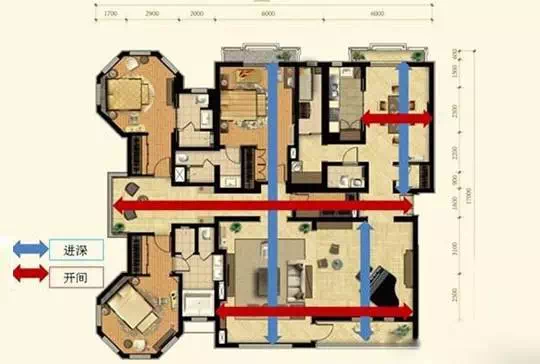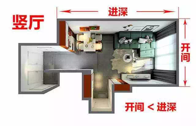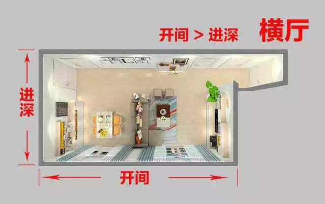 先给各位科普一下,什么是横厅,首先了解一下开间和进深的概念,房子的主要采光面叫做开间,与之垂直的是进深。