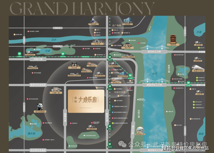 项目地处钟家村版块核心,鹦鹉大道沿线,能便捷辐射武汉三镇核心(驱车鹦鹉洲大桥3min/武昌站9min/汉口11min/光谷20min)