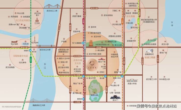 周边直线3km范围内有18个地铁站(复兴路、首义路、彭刘杨、紫阳湖、司门口黄鹤楼、武昌火车站、八铺街、小东门、江安路、武昌站东广场、昙华林武胜门、梅苑小区、螃蟹岬、瑞安街、小龟山、烽火村、中南路、积玉桥),轨道交通发达,距离最近的地铁站是复兴路。