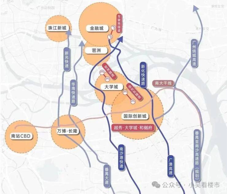 项目距离4号线地铁新造站约1.2公里,步行大概需要18分钟左右,不算很方便,乘坐4号线,4个站到万博,5个站即可到琶洲,自驾的话出门就是南大干线,去往南站和万博也很方便,金光东隧道也已经通车,开车去往大学城也很快,加上官洲隧道和车陂南隧道,未来自驾去往琶洲和金融城也更加方便。