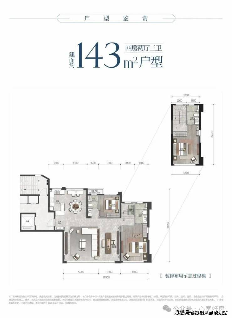 【主力户型】:小高建筑面积约125-143㎡,高层建筑面积约143-185㎡。