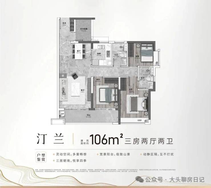 🤩南北对流,106㎡舒适三房,高效实用空间,满足大家庭需求,阔景阳台,四季景观尽收眼底