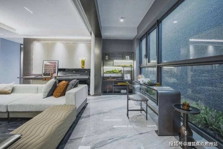 客厅外接阔景阳台,开间约5米,进深约1.6米,面积接近8㎡,而且是封闭交付,业主后期无需改造,省时省力省钱,阳台大面积落地窗设计,让室内采光更好,这样的面积尺度既能满足家庭晾晒需求,又能在阳台种植些花草、养宠物、健身等等,功能性很强大。
