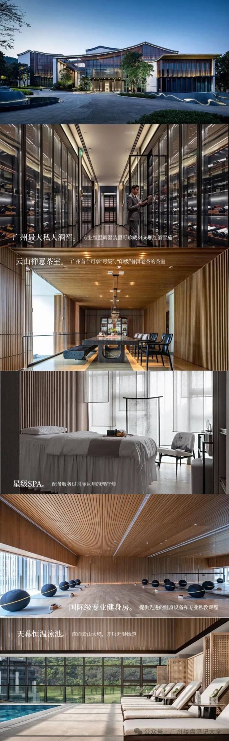 卖点四、【高端圈层】亿元定制会所, 顶流圈层私属,斥资上亿元, 匠造规模近 10000 ㎡的华南四大会所之一。广州最大私人酒窖、广州首个可享“号级”、“印 级”普洱老茶的茶室、 国际巨星同款星级 SPA、 国际级专业健身房、天幕恒温泳池。