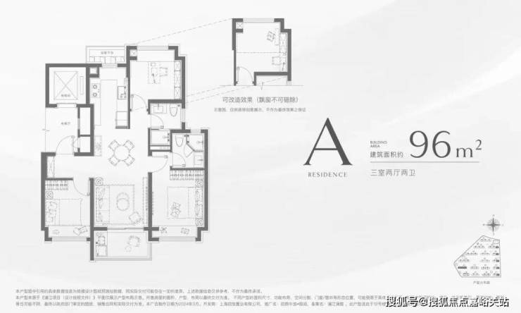 这个96㎡的户型,不仅实现了3房功能性一步到位,还有2卫配置!降低当下置业成本的同时,未来在二手市场也能抢占先机!