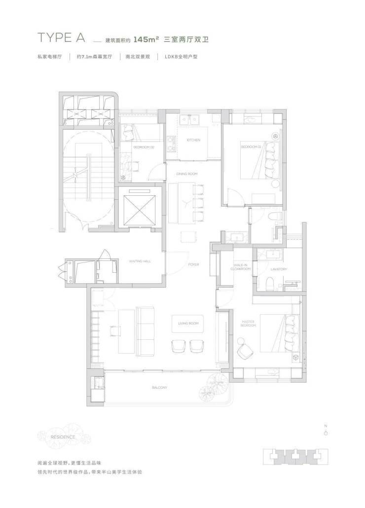 观景双阳台-高定双套间-私家电梯厅-双洄游动线
