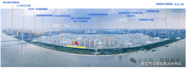 它精准地锚定在武昌滨江商务区(核心区)与青山滨江板块之间的关键衔接带上,距离武昌滨江商务区价值暴风口仅约两公里。