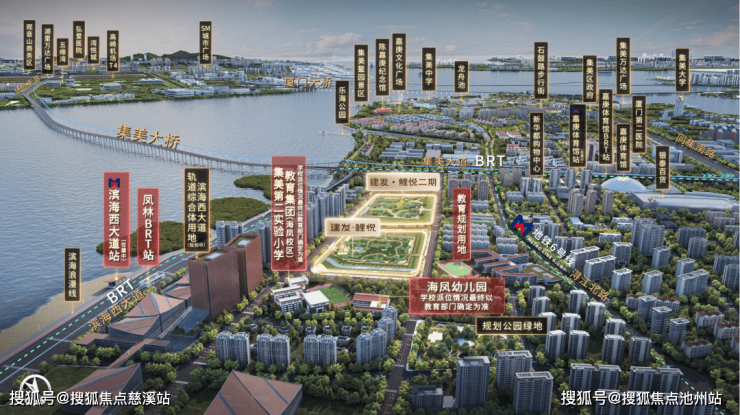交通:附近有 6 号线(在建中)/9 号线(规划中)双地铁、5 条 BRT 线路,距离集美大桥较近,可实现一站进岛。此外,400米处有 BRT 凤林站,直线距离约 800 米有 BRT 嘉庚体育馆站,直线距离约 500 米有地铁 6 号线滨海西大道站(在建中),直线距离约 800 米有地铁 9 号线嘉庚体育馆站。